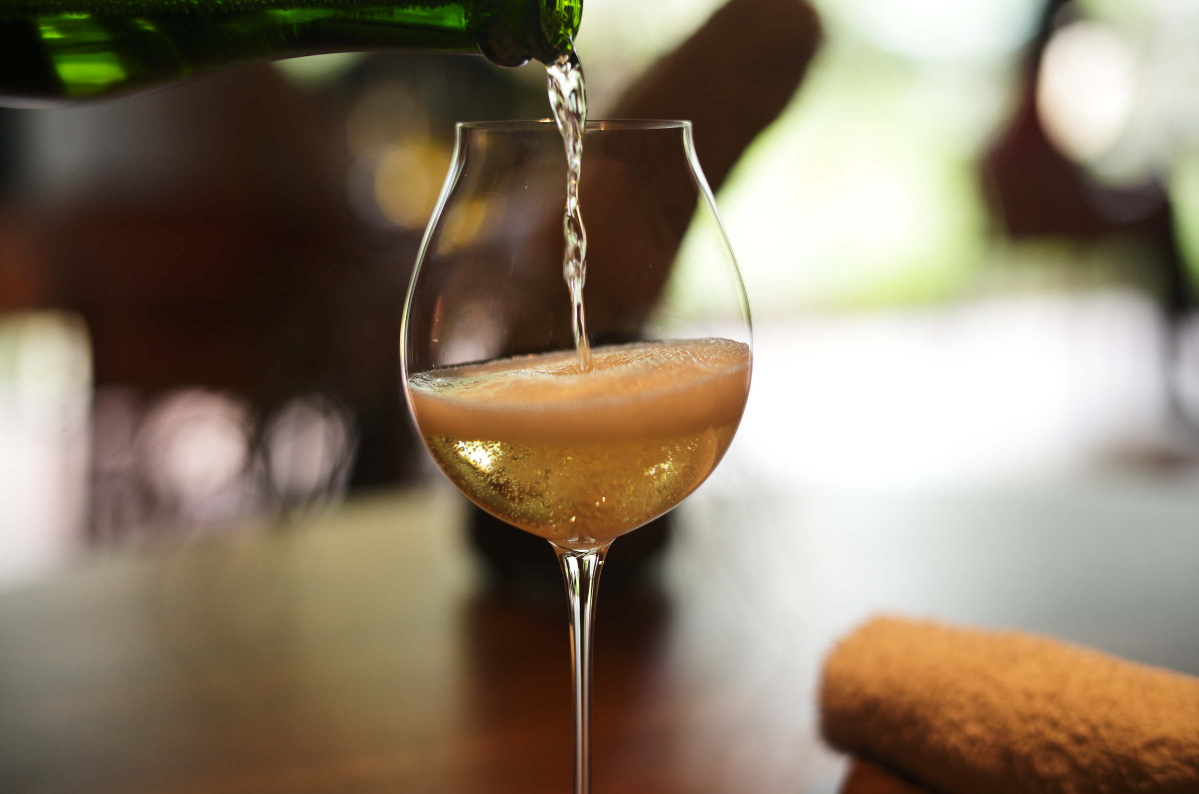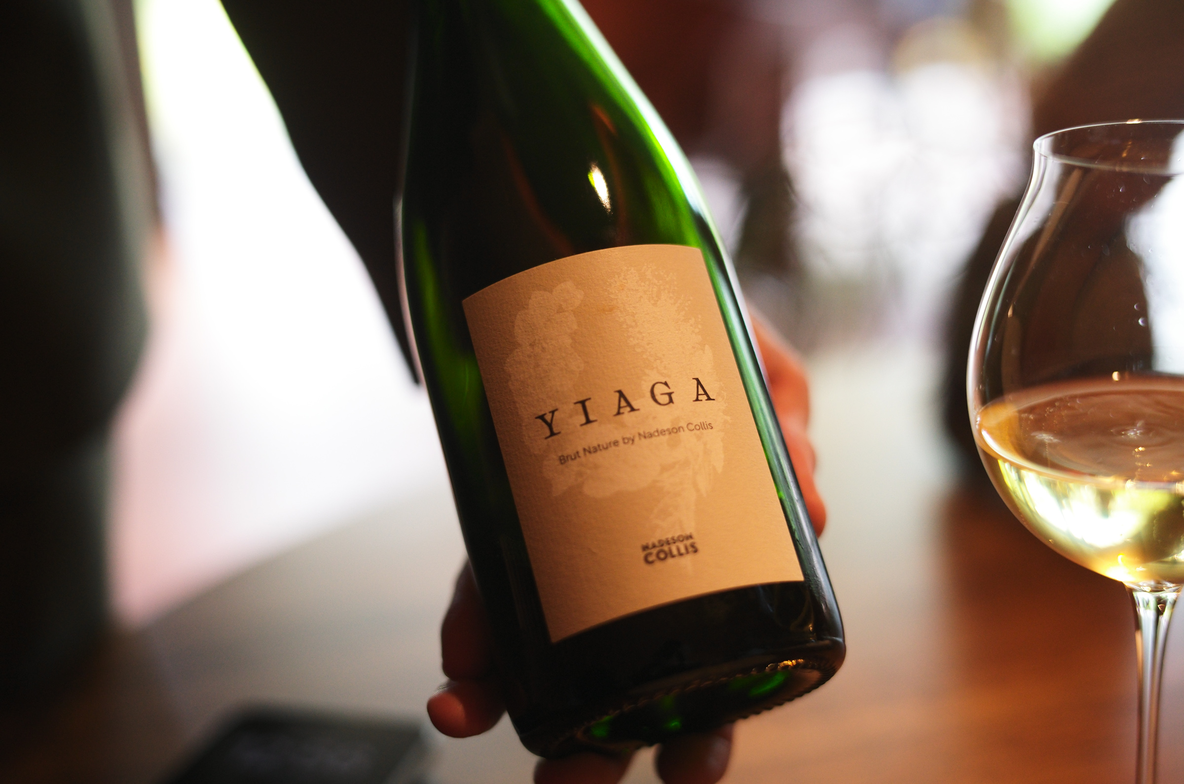 まずはスパークリングで乾杯。Yiagaで特注しているオリジナルボトルで、爽やかな酸味と透明感のあるナチュラルなスタイル。