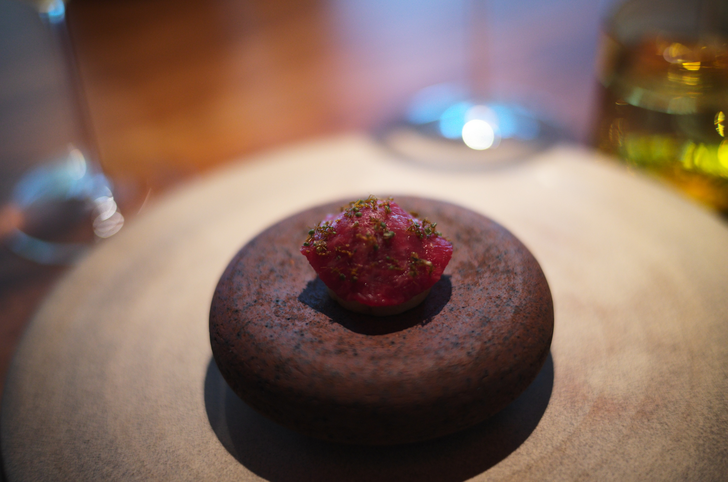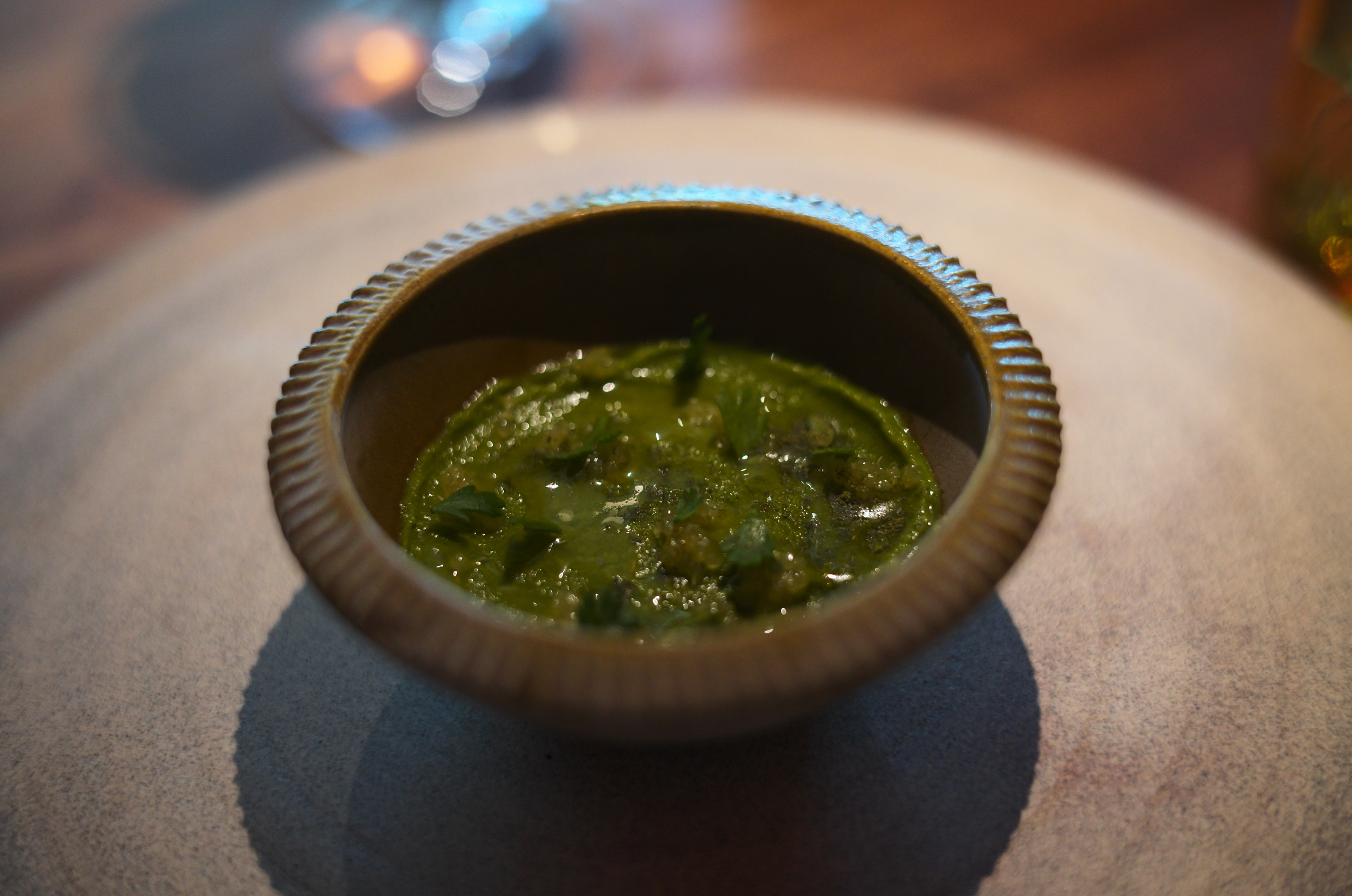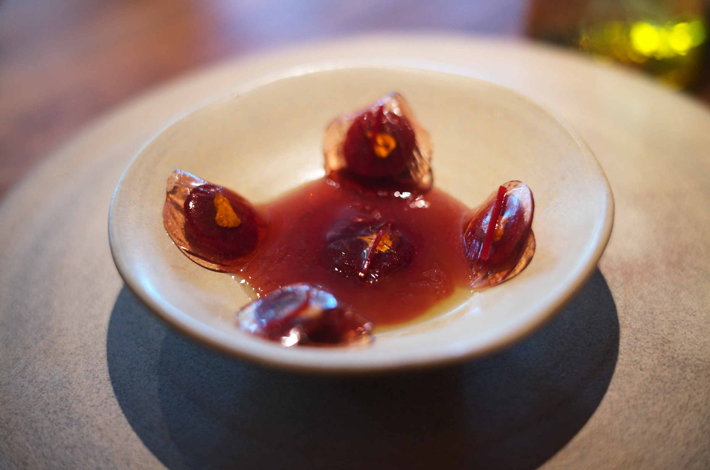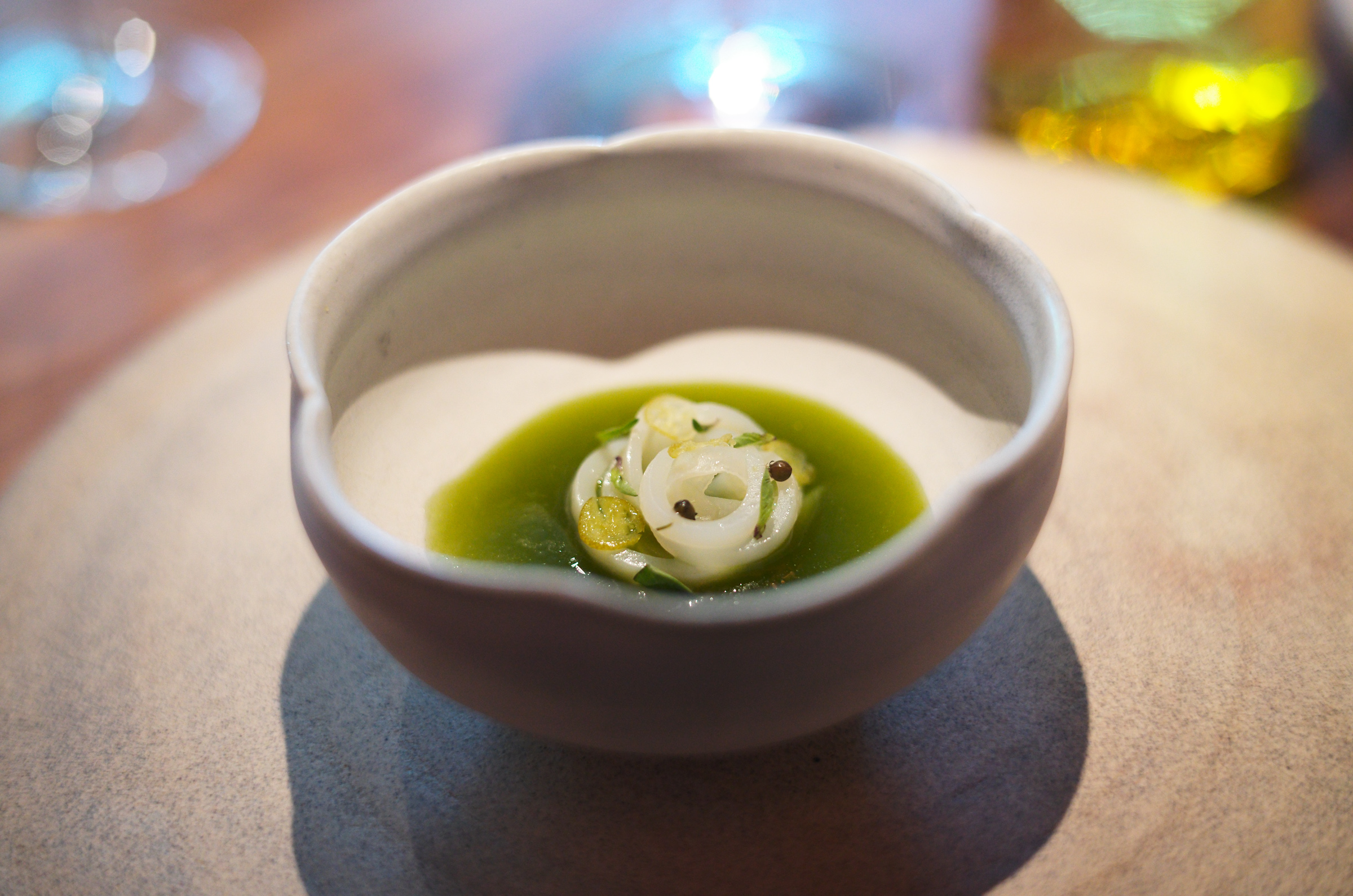 ワインでのペアリングに拘らない柔軟さ、酸味をベースに爽やかにコースを開始する試合運びは日本のKabiや野田を思い出す。シャンパンでフォーマルで華美な雰囲気を出していくような方向性ではなく、カジュアルで自然体だけどセンスがあるスタイル。