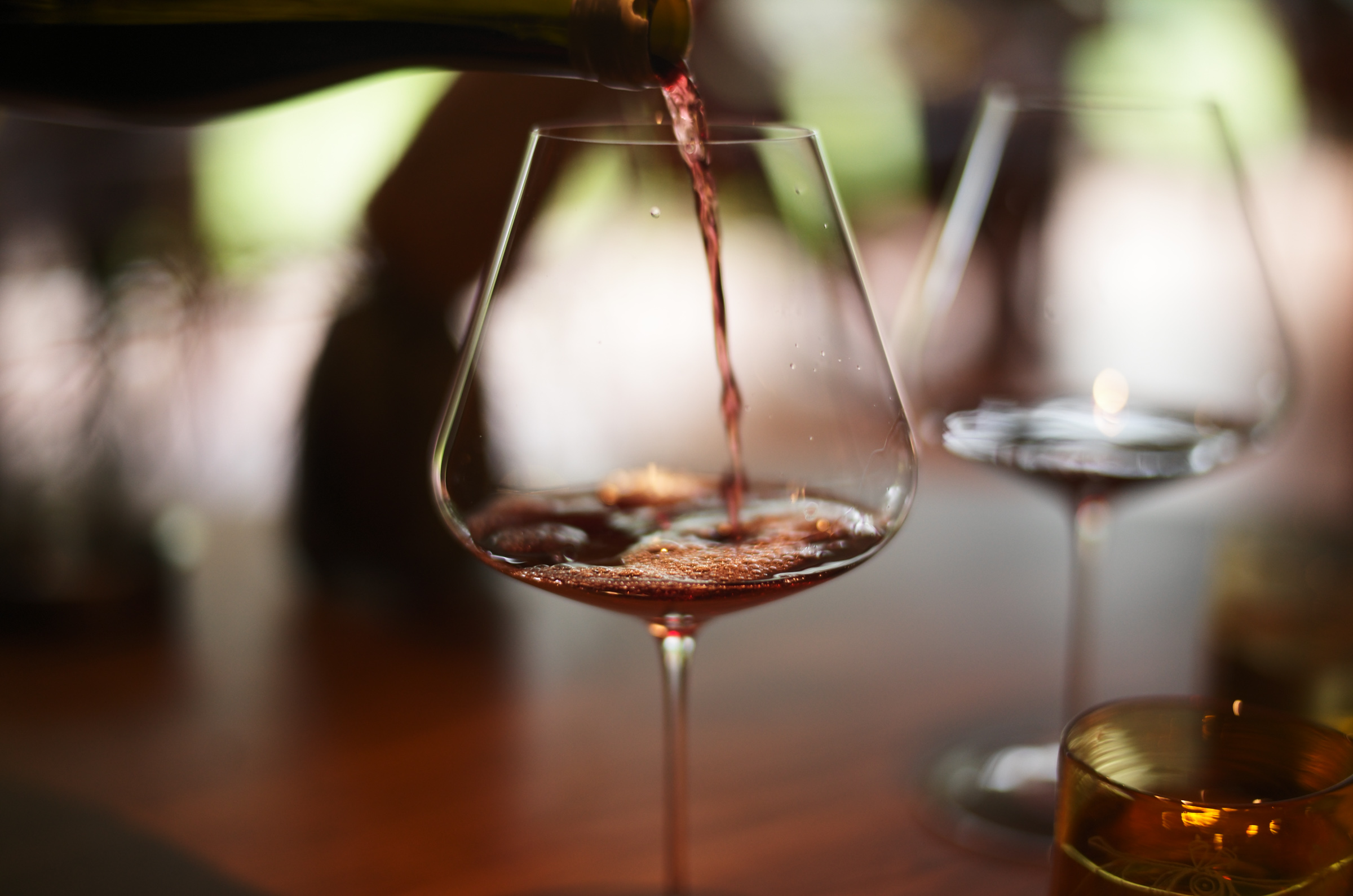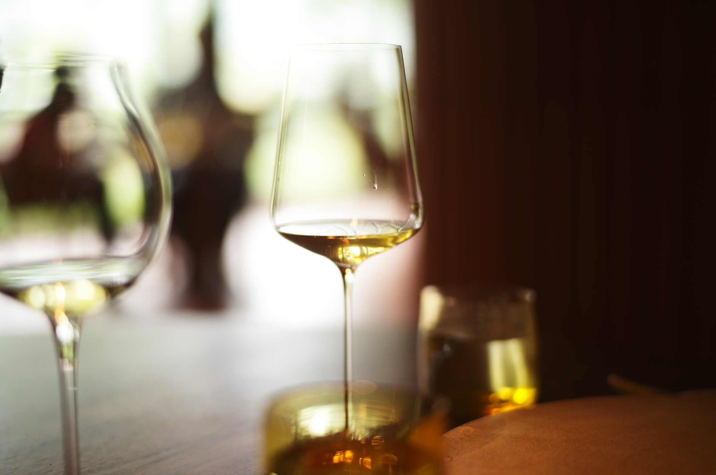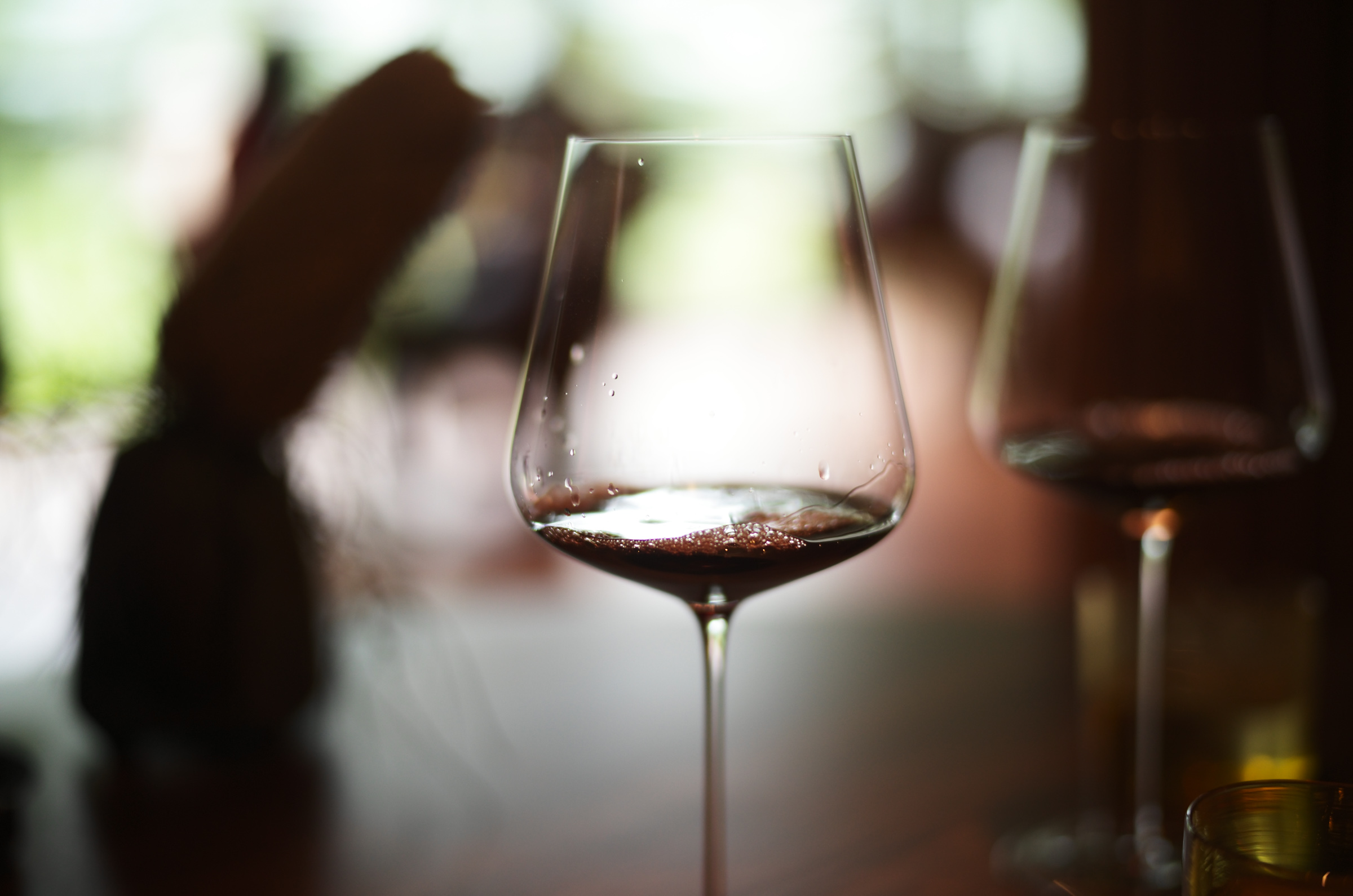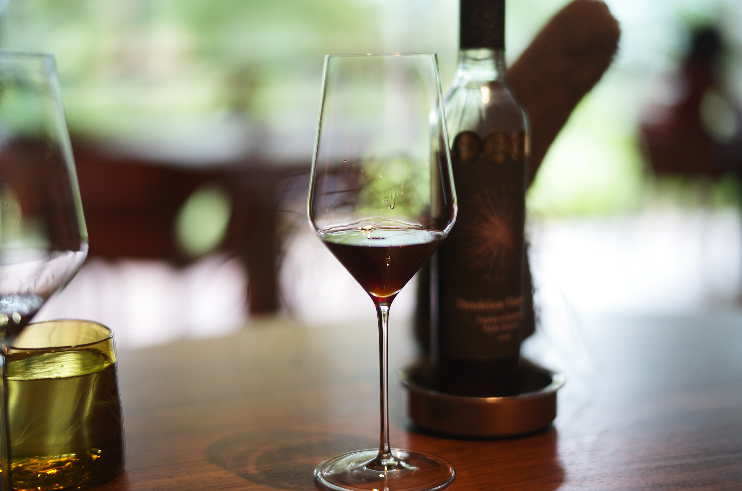 外の緑が美しく、グラスとワインに透過する光が美しく、森っぽい雰囲気の音楽(?)がゆったりと流れていて、空間も最高であり、幸せ。