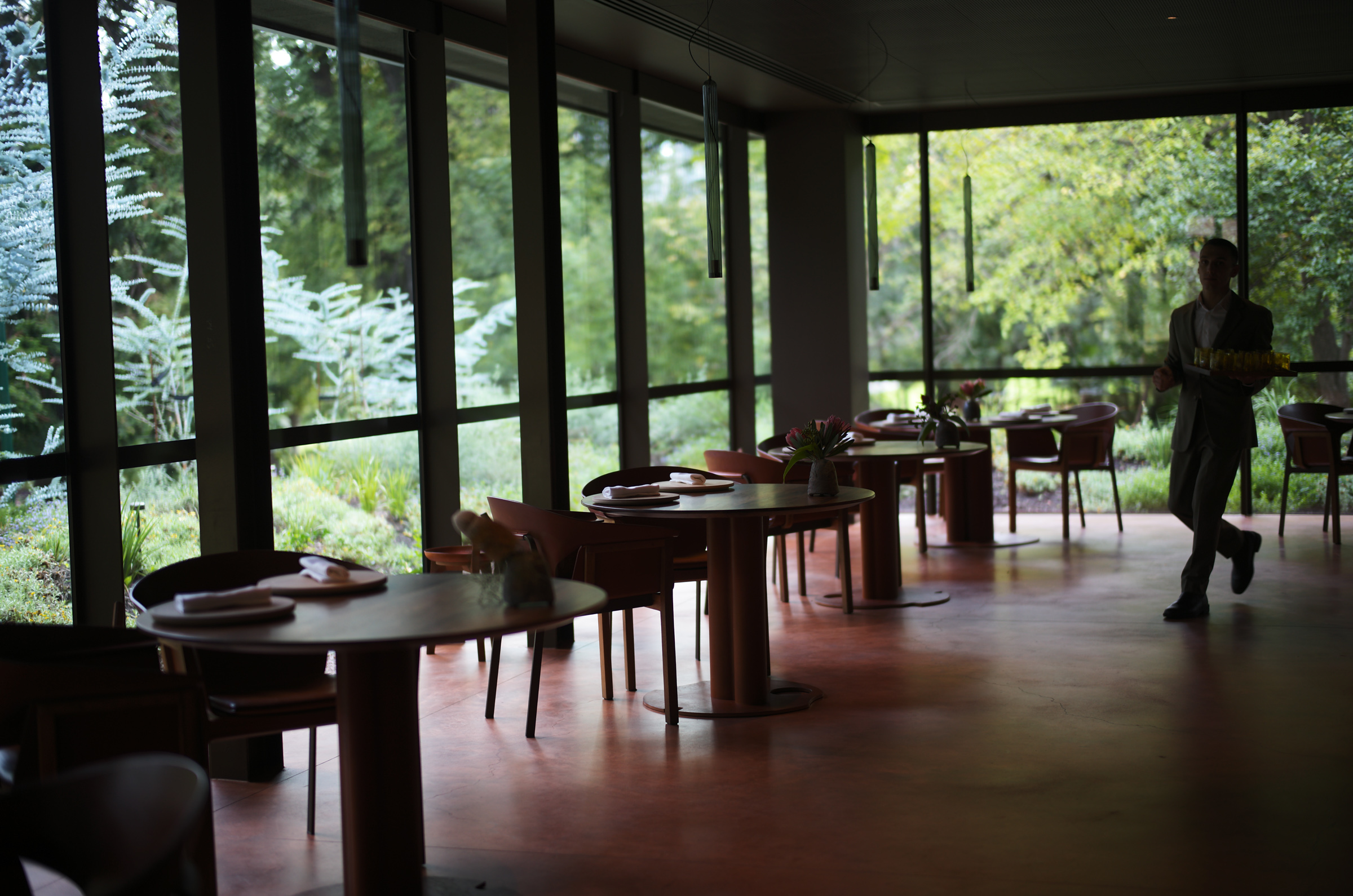 Fitzroy Gardensは昔からの歴史ある公園の中であり、美しいヨーロッパ式庭園の緑の中を歩いて建物に辿り着く体験が心地よい。ほんの少しだけ俗世から切り離された別世界に迷い込んだ気持ちになる。個人的にはパリのLe Pre Catlanを思い出す体験で、日本でもこういう入る前から特別感のあるレストランができて欲しいなあ。